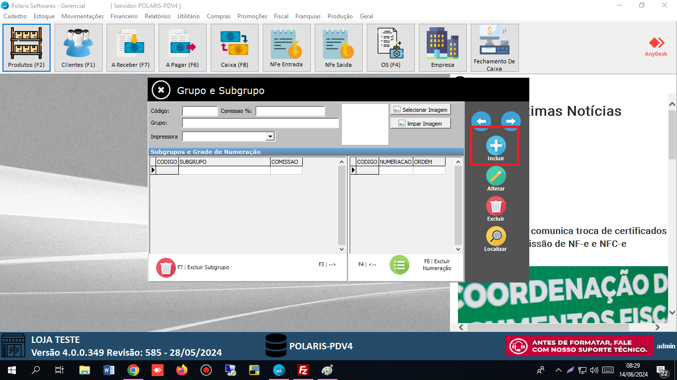 3 PASSO = a aba do cadastro de grupos será aberta após o passo 2, clique em incluir