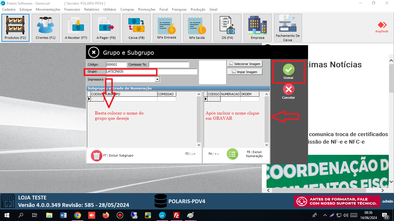6 PASSO = Após localizar o grupo, clique em alterar e onde esta escrito subgrupo, digite o nome que deseja, como na foto abaixo, clique em gravar para salvar