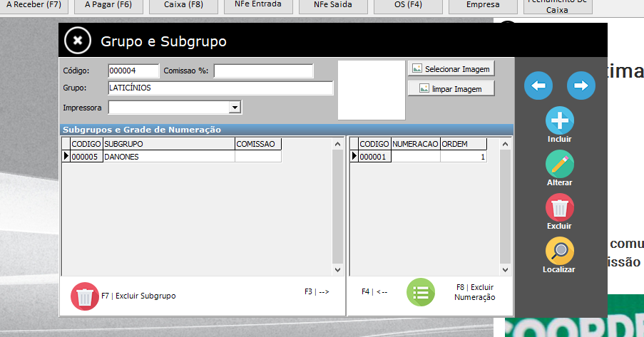 Cadastro de Grupo e Subgrupo